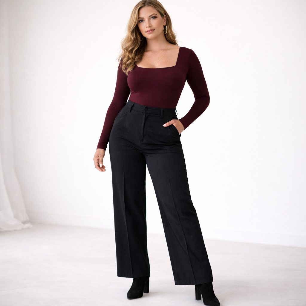 If you’ve ever dealt with a top coming untucked every time you sit down, a bodysuit solves that problem permanently. The smooth line from shoulder to hip creates an unbroken silhouette that makes wide leg jeans look intentionally tailored rather than casually thrown together. This date night look hits that sweet spot between trying and not trying — you clearly put thought into it, but you’re not overdressed for dinner and drinks.