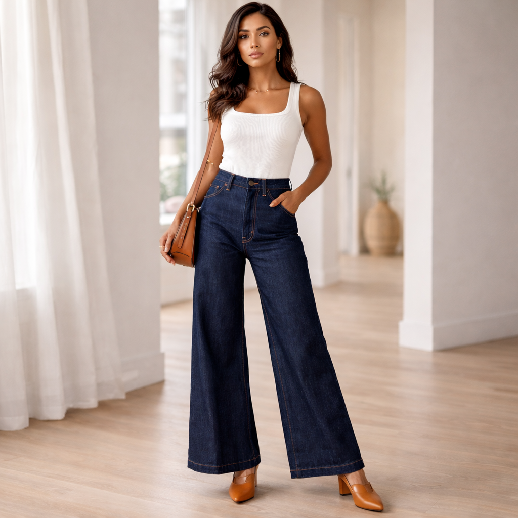 The best wide leg jeans outfit ideas share one thing: they balance volume with intention. Every look here follows the same principle — fitted on top when loose on bottom, or strategically structured pieces that create shape without restriction. The silhouette does the styling work for you.