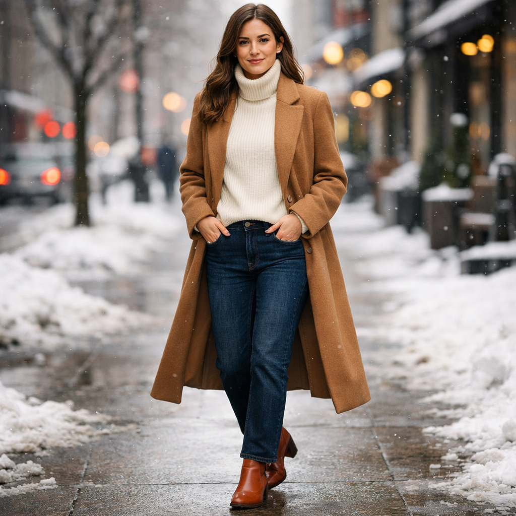 Honestly? One good one handles ninety percent of situations. A wool-blend coat in camel, black, or charcoal works for everything from office days to weekend errands. If you live somewhere with genuinely brutal winters, add a quality puffer for the coldest days. But most beginners overbuy coats and underbuy base layers — flip that priority.