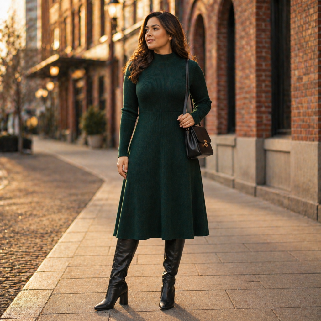 Absolutely — fleece-lined tights are transformative. A midi sweater dress with 100-denier tights and knee-high boots keeps you warmer than jeans in wind. Add a long coat and you’re set for temperatures down to freezing. The key is covering skin strategically.