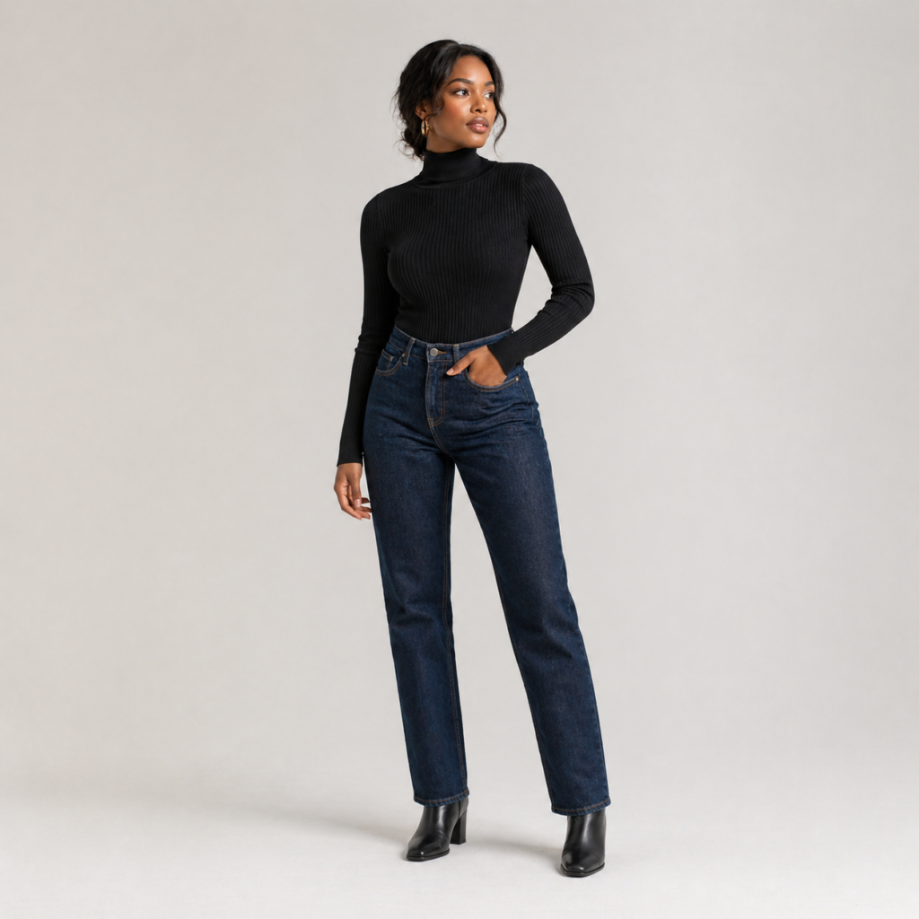 Here’s what most winter dressing guides skip over: your base layer determines whether you’ll look polished or lumpy under all those coats. A fitted ribbed turtleneck in black or cream creates clean lines that photograph beautifully and feel surprisingly luxurious against skin. Skip the boxy cotton basics and reach for something with a touch of modal or viscose blend — these fabrics drape better and resist that sad pilling that makes everything look worn out by February.